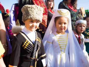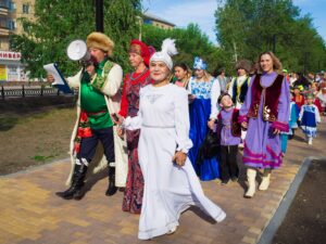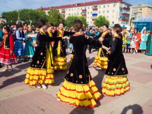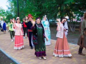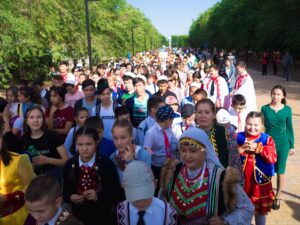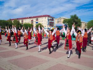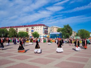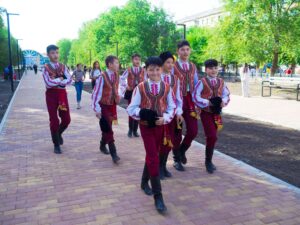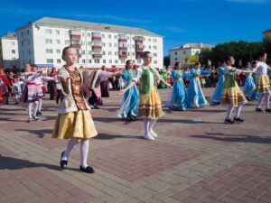В ходе праздника сегодня прошел парад национальных костюмов, где представители разных учреждений и организаций города шествовали с курантов в нарядных национальных костюмах до центральной площади города. Далее участники парада продемонстрировали свои наряды в центре площади и присоединились к танцевальному марафону и хороводу, где звучали поппури из разных народных мелодий.