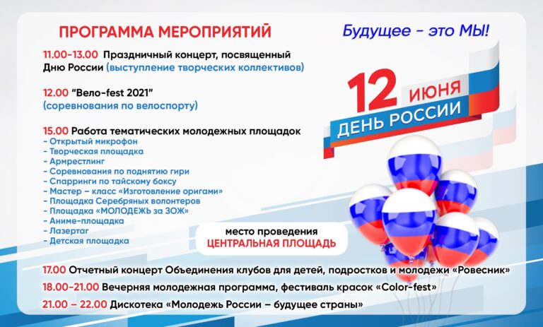 12 июня в Сибае состоятся праздничные мероприятия, посвящённые Дню России. Ждём вас на праздник, уважаемые горожане!