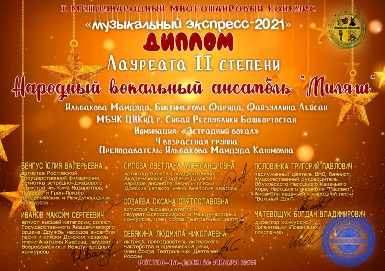 Первая победа в нашу копилку достижений в этом году. Народный вокальный ансамбль "Миляш" стал лауреатом II степени международного многожанрового конкурса...