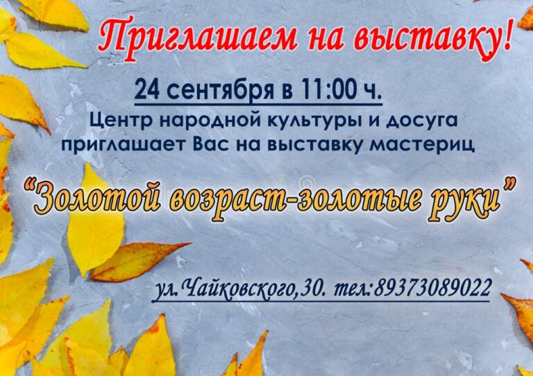 24 сентября в Центре народной культуры и досуга состоялось открытие выставки «Золотой возраст - золотые руки», посвященный Дню пожилых людей. В выставке...