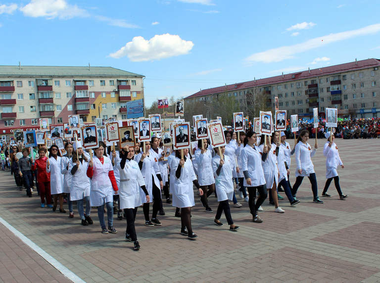 9 мая прошла акция «Бессмертный полк», с утра к Центру народной культуры и досуга стали стекаться горожане, огромное количество людей пришло, чтобы участвовать в шествии, каждый нес в руках фотографию, чтобы рассказать всем о своем герое Великой Отечественной войны.