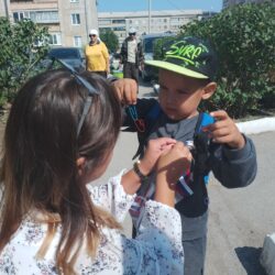 Дети позитивно присоединились к акции и с благодарностью приняли сувениры в виде ленточек.