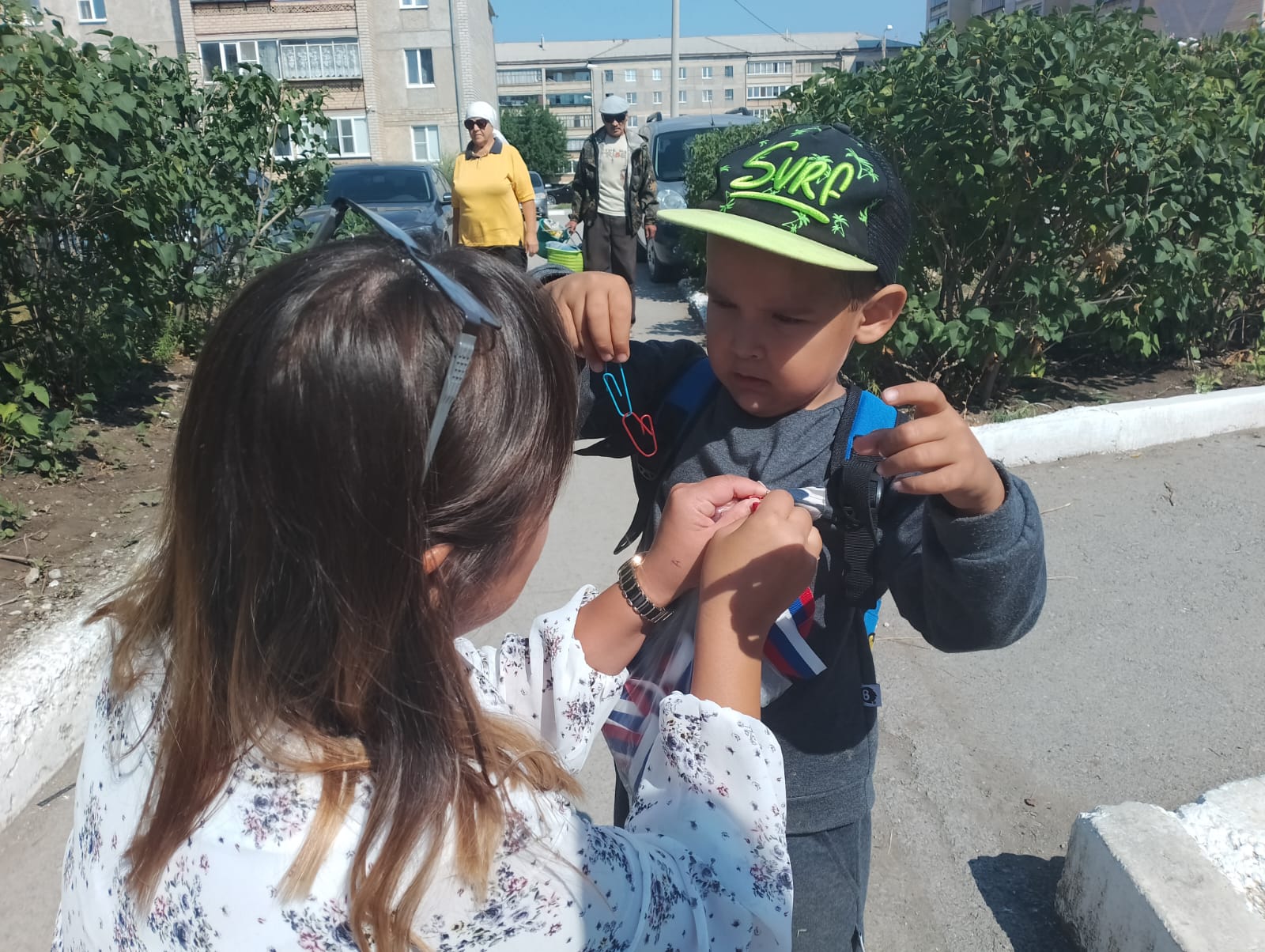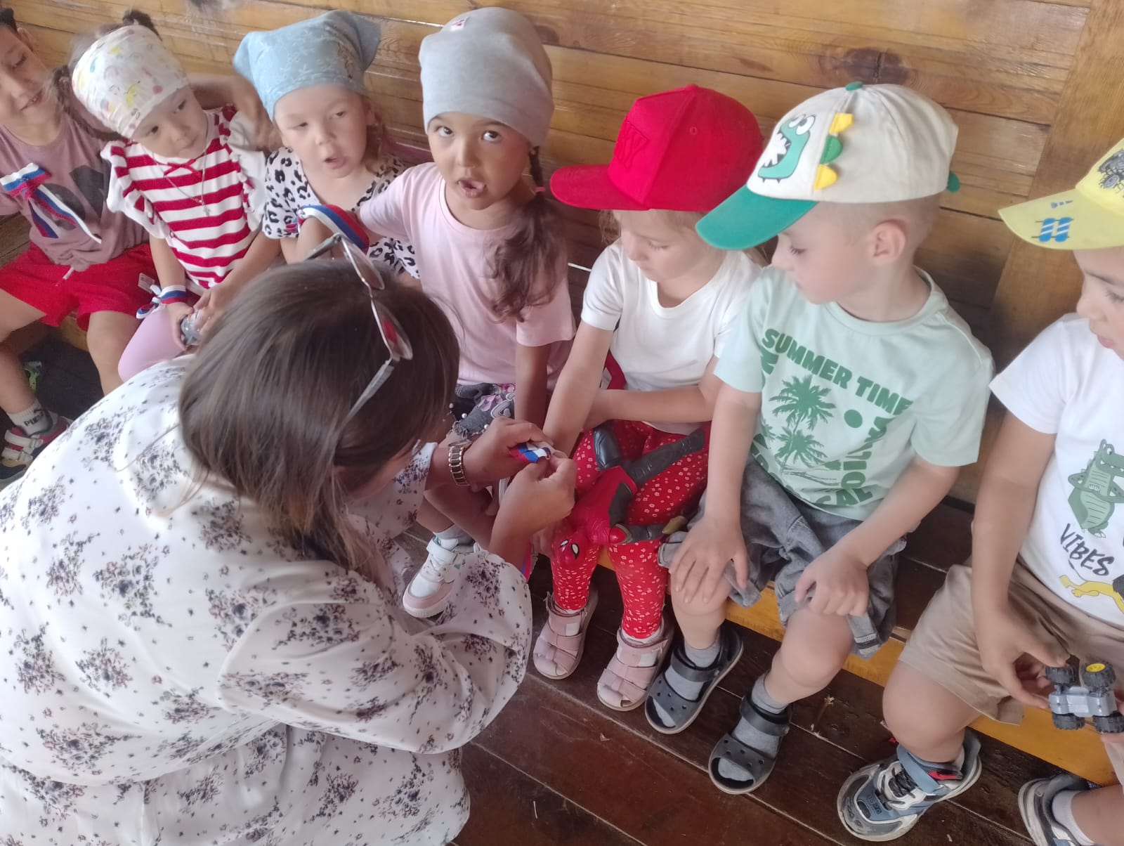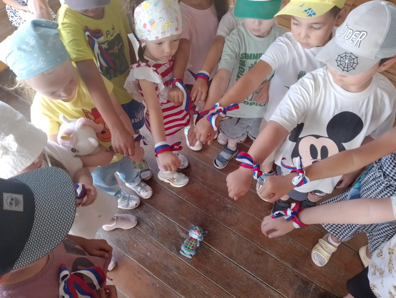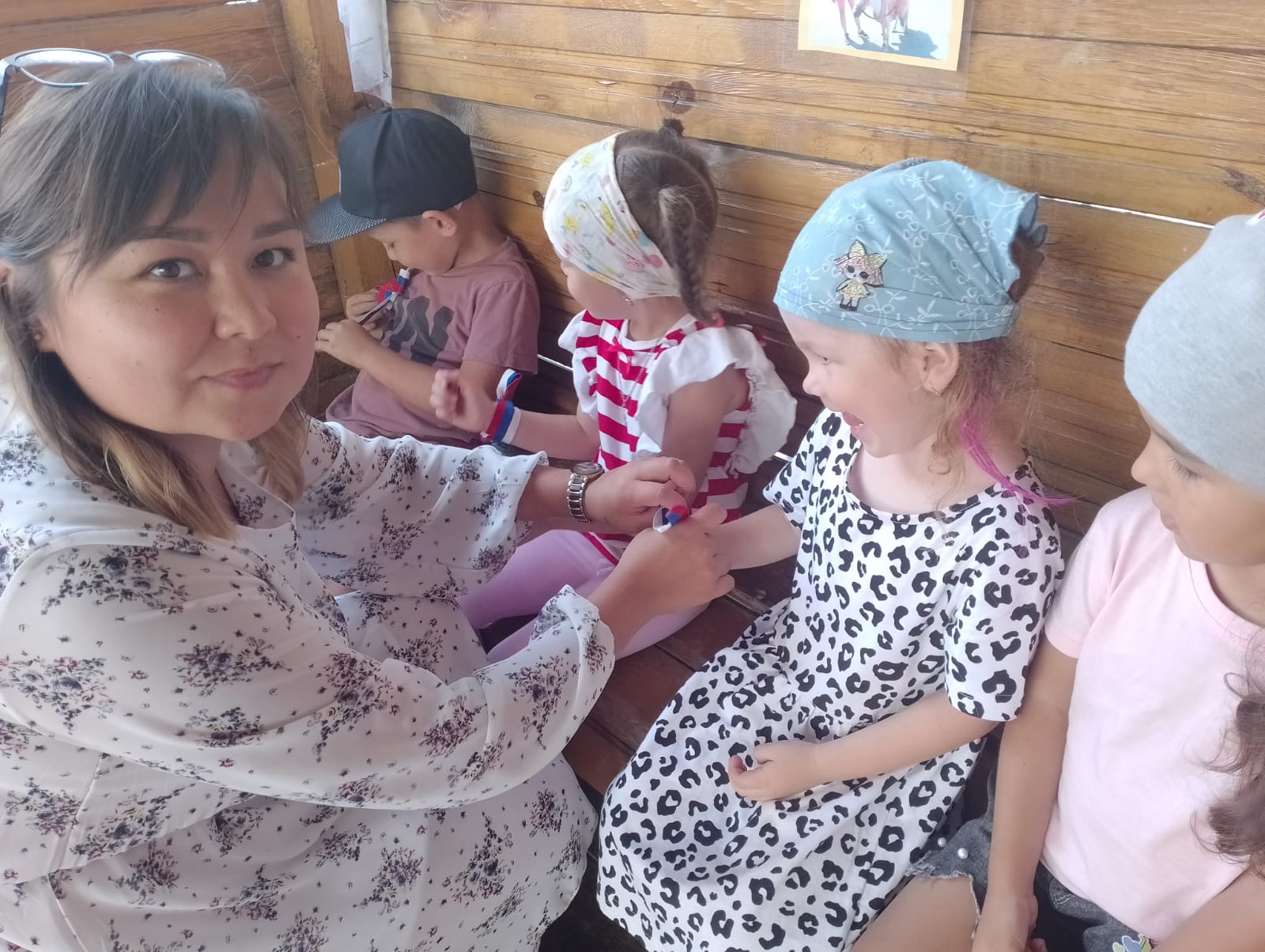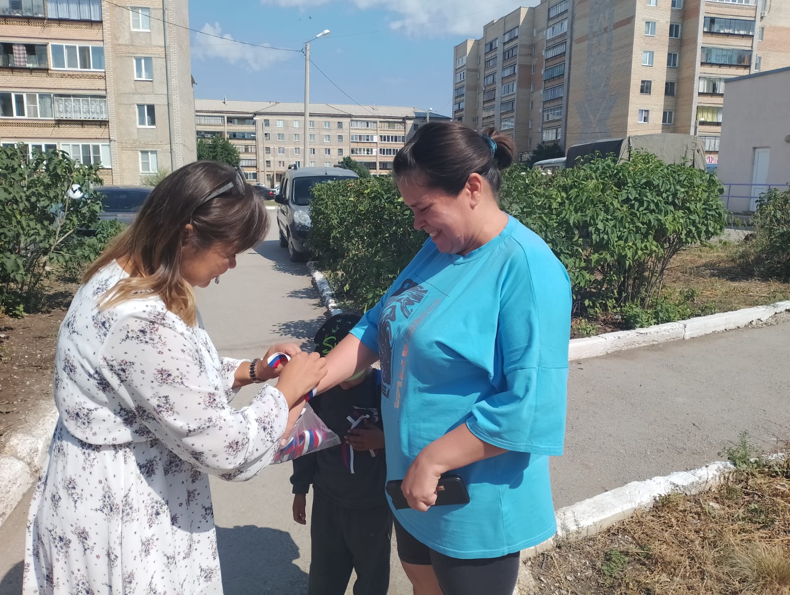 Символы праздника были розданы воспитанникам детского сада «Сказка» и жителям города. Вместе с ленточками рассказали об истории праздника, значении цветов российского флага.