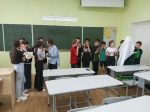 16 май ДББУ 3-сө һанлы «Сибай «республика полилингваль күп профилле гимназия -интернатында Халыҡ ижады һәм мәҙәниәте үҙәгенең «Яугел» халыҡ ҡумыҙсылар ансамбле етәксеһе, Башҡортостан Республикаһының атҡаҙанған мәҙәниәт хеҙмәткәре Рафиҡова һәм филология фәндәре кандидаты Аҡманова Римма Һөйөндөк ҡыҙы (ҡумыҙсылар ансамбле солисы) 5 Б класы уҡыусылары (тәрбиәсеһе Тойғонова Миләүшә Азат ҡыҙы) менән осрашты. «Башҡортостан – ҡумыҙ теле» исемле был мастер-класты 9 Б класы уҡыусылары (класс етәксеһе Кәримова Рауилә Ишбулды ҡыҙы) Пушка картаһы менән һатып алып 5 Б класы уҡыусыларына бүләк иткән. Был музыка ҡоралына элек-электән халыҡ араһында ҡатын-ҡыҙҙар һәм балалар уйнай торған уйын ҡоралы тип ҡарағандар. Ысынлап та, ҙур йыйындарҙа, халыҡ күпләп йыйылған урындарҙа ир-ат йышыраҡ ҡурай тартҡан, ҡумыҙға әһәмиәт бирелмәгән. Был турала үҙ хеҙмәттәрендә билдәле тикшеренеүселәр – музыковед Лев Николаевич Лебединский менән археолог, этнолог Сергей Иванович Руденко яҙып ҡалдырған. Шулай уҡ ҡумыҙҙың ҡатын-ҡыҙ уйнай торған музыка ҡоралы икәнлеге тураһында сәнғәт белеме кандидаты Римма Борисовна Галайская ла әйтеп үткән. Бөгөн иһә ҡумыҙҙа уйнаусылар ир-егеттәр, ҡатын-ҡыҙҙар, балалар араһында ла байтаҡ. Был уйын ҡоралы барыһының да күңелен берҙәй яулап алды. Дилара Мөхитдин ҡыҙы ҡумыҙ теле менән яуға сапҡан аттарҙың тояҡ тауыштары, һыҙғырып осҡан уҡ тауыштары, сыңлап үткән яу тауыштарынан тыш, бал ҡорттары, салғы тауышы, ҡош тауыштары, ел, ямғыр кеүек тәбиғәт тауыштарынан импровизация уйнап күрһәтте. Шулай уҡ, үҙебеҙҙең ерлектәге «Суҡ муйыл», «Ете ҡыҙ», «Хәтирә», «Әпипә» кеүек халыҡ көйҙәре балаларға бик оҡшаны. Уҡыусылар үҙҙәре лә ҡумыҙ серенә төшөнөп, көйләп уйнарға өйрәнделәр. Римма Һөйөндөк ҡыҙы ҡумыҙ төрҙәре менән таныштырып үтте. Ҡумыҙ, үҙ сиратында, ике төрлө: ағас ҡумыҙ (ағастан юнып эшләнгән телле ҡорал) һәм күптәргә билдәле булған варган – тимер ҡумыҙ (вибрация биреүсе тимер йәки еҙ пластинкалы тимер дуға рәүешендәге музыка ҡоралы). Шулай уҡ Дилара Мөхетдин ҡыҙы төрлө илдәрҙең ҡумыҙҙарында уйнап күрһәтте. Осрашыу бик матур үтте.