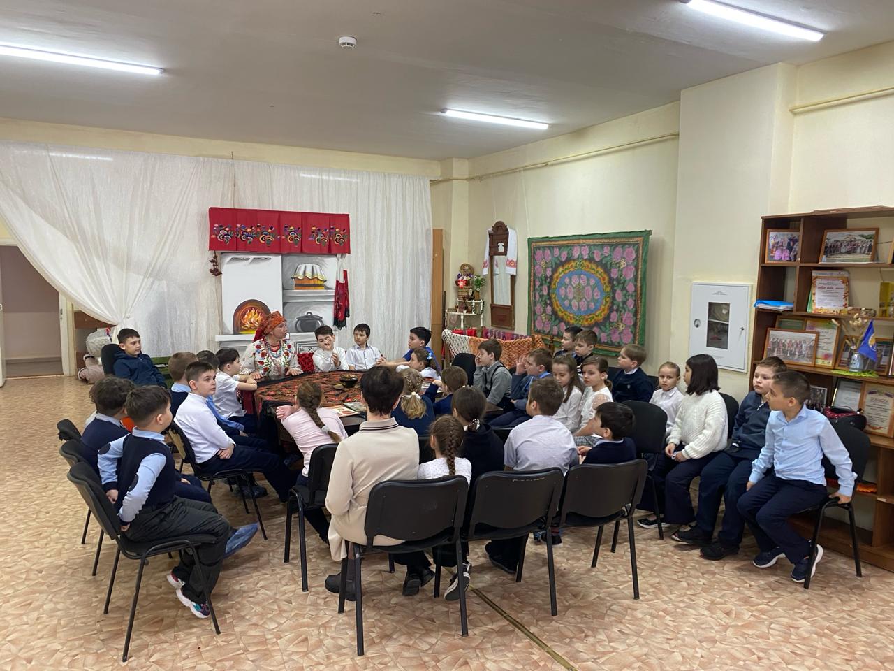 Сегодня, руководитель народного ансамбля русской песни «Мироколица» Татьяна Вершинина пригласила к себе в гости учащихся 3-го класса школы № 1. Ребята окунулись в мир русского фольклора: размышляли над понятием » Народная мудрость», разобрали значение элементов народного костюма, открыли смысл старинных слов — лакомник, кокошник, гарусный поясок. В сопровождении народного инструмента спели распевки, весенние заклички. Узнали, как в старину по звучанию голоса в пространстве определяли приход весны. Традиционно в конце занятия в качестве подарка прослушали сказку «Скрипи липова нога». Образ русской зимушки — большухи, которая борется с приходом весны, воплотился в рассказе о масленичной неделе. Особый интерес вызвал вторник, «Заигрыш, в котором все внимание в народном гулянии отдавалось молодым парам, недавно поженившимся. Четверг — разгуляй заинтересовал кулачными боями — символом борьбы тепла и холода, весны и зимы. Ребята спели песню М.Исаковского «Катюша», которая завершила встречу с народной культурой. Расставались с желанием встретиться вновь.