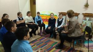 Руководитель народного ансамбля русской песни «Мироколица» Татьяна Борисовна Вершинина поделилась секретами русского фольклора. В ходе мероприятия она познакомила детей с традициями, вспоминали русские народные пословицы. А в конце для ребят Татьяна Борисовна рассказала русскую народную сказку, которую дети слушали, затаив дыхание.