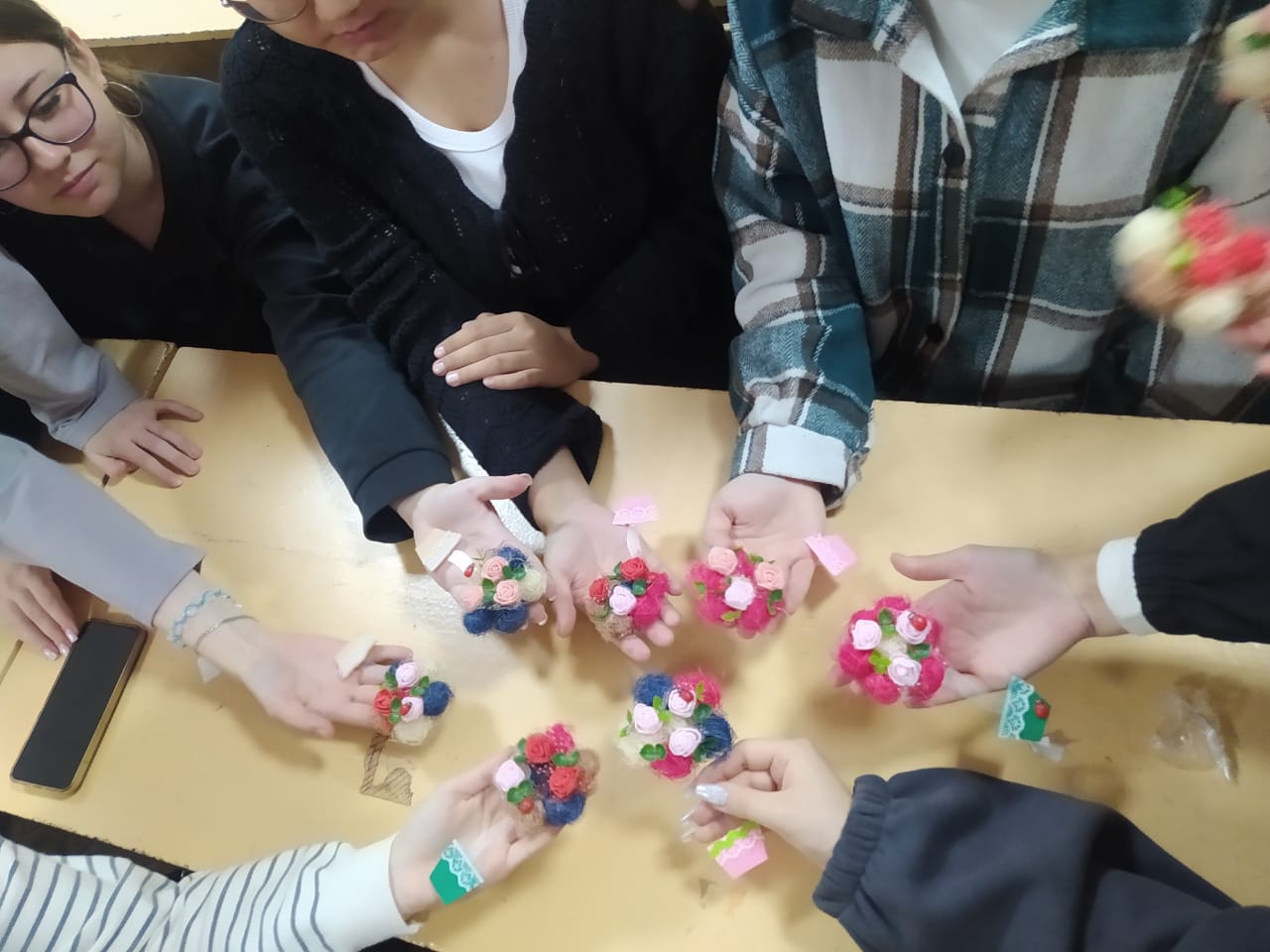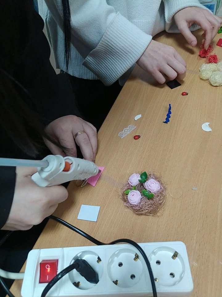 Мастер-класс включал в себя творческое занятие — создание магнита «Дерево желаний». Участники с удовольствием создавали свое уникальное дерево, вкладывая в работу частичку души и любви. Выбирали элементы украшения дерева исходя из того, какие цветы и какой цвет любят их мамы. Студенты делились своими мыслями и чувствами о мамах, рассказывали о своих семейных традициях и отношениях.