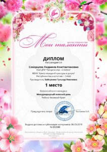 Клуб декоративно-прикладного искусства Центра народной культуры и досуга «Рукодельница-Оҫтабикә» стали участниками Всероссийского конкурса мастеров декоративно-прикладного искусства и народного творчества «Мои таланты», проходившего в рамках проекта » Международный женский день».