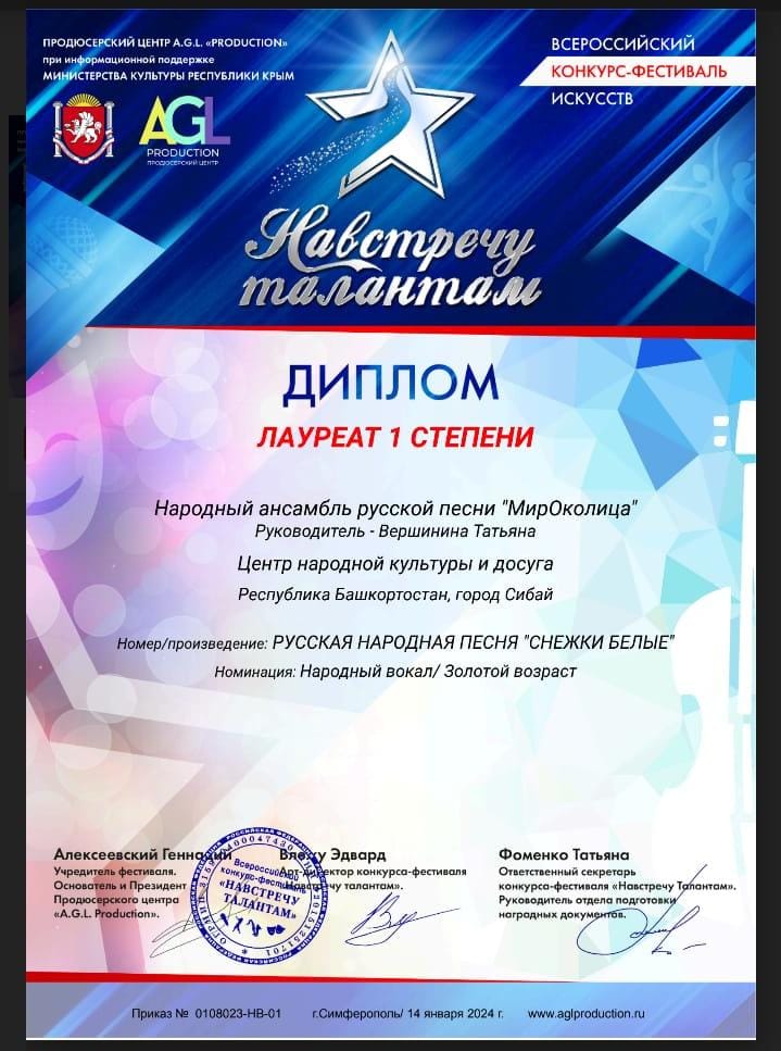 Открываем 2024 год успешно! Народный ансамбль русской песни «Мироколица» принял участие во Всероссийском онлайн конкурсе — фестивале «Навстречу талантам». На конкурс была представлена русская народная, протяжная песня Уральских казаков