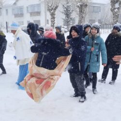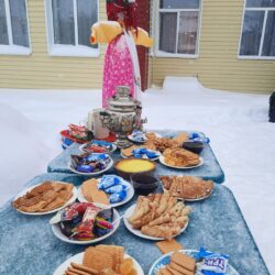 Мероприятие закончилось чаепитием. Горячий чай из самовара, ароматные блины, улыбки детей всех настроили на весенний лад и подарили прекрасное настроение, несмотря на снежную метелицу!