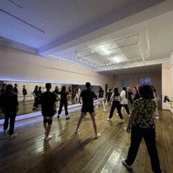 Во время мастер-класса было предложено овладеть некоторыми элементами одного из самых доступных и популярных стилей современного танца. В начале урока любители танцев были немного скованы, но к концу от неуверенности не осталось и следа.