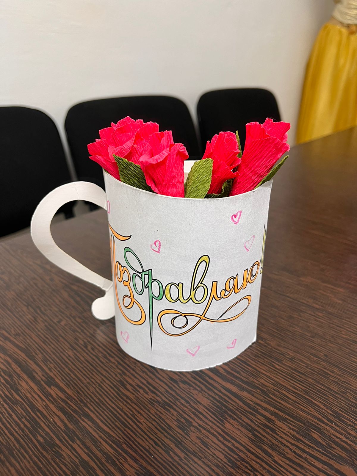 С самого начала занятия ребята окунулись в творческий процесс. Они старательно и аккуратно вырезали и приклеивали каждый элемент изготовляемой ими открытки и оставили теплые поздравления для своих любимых учителей.