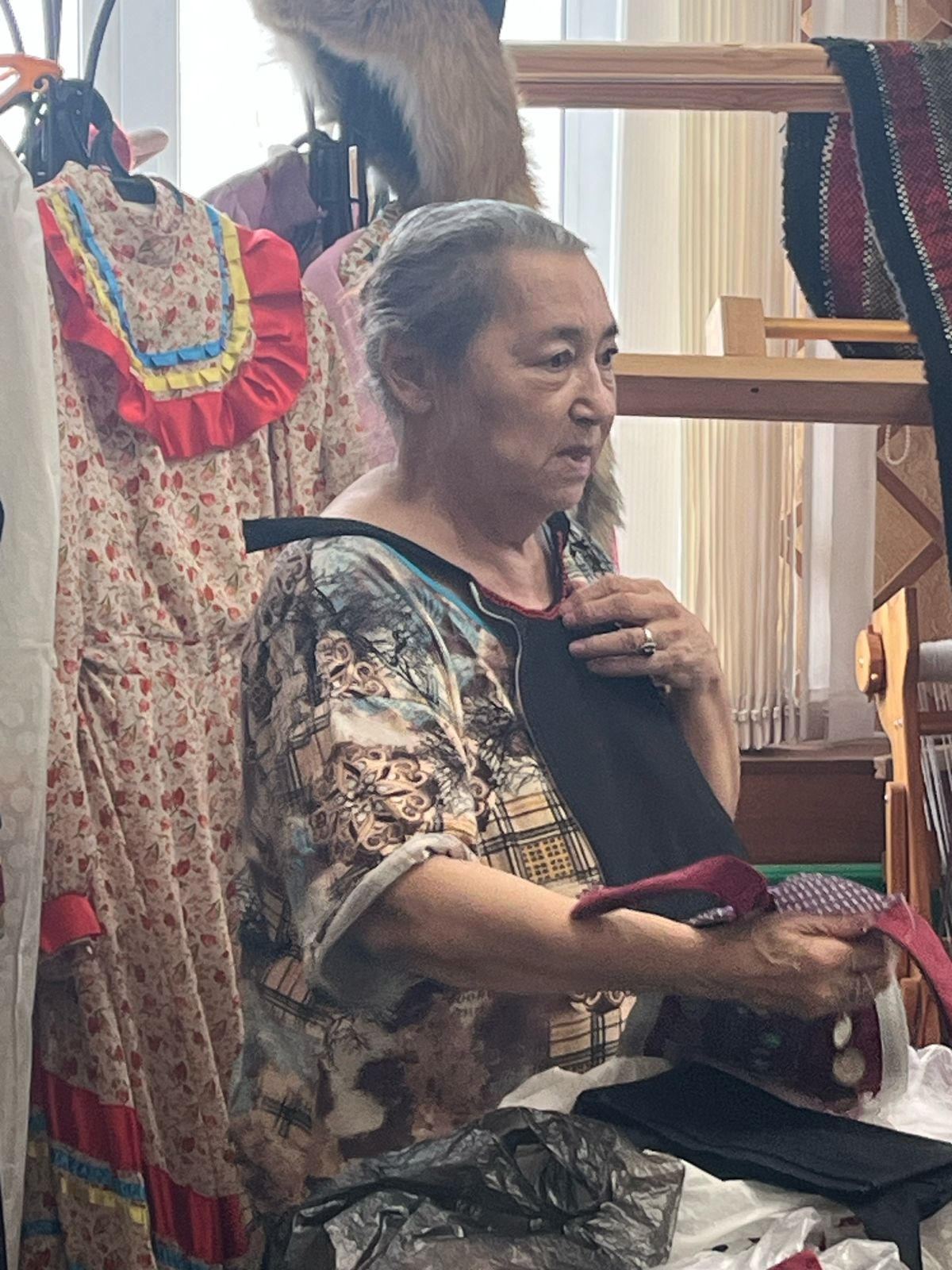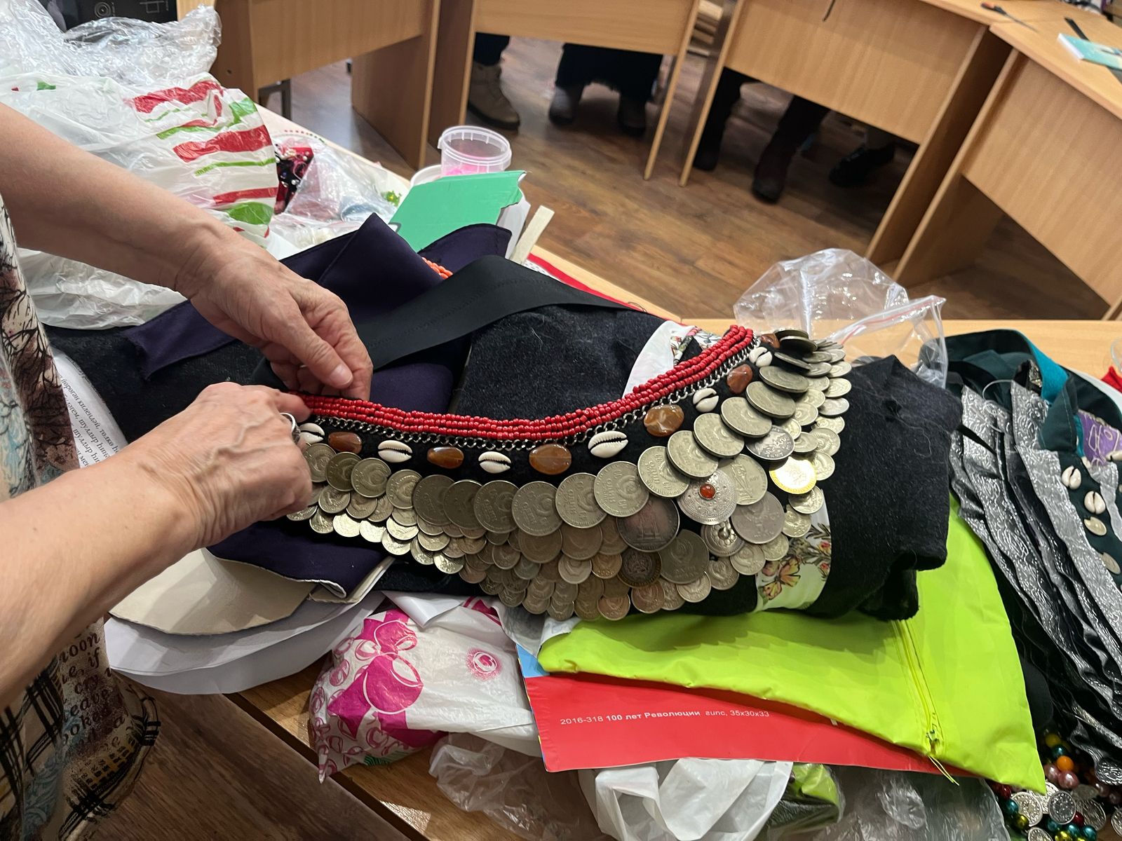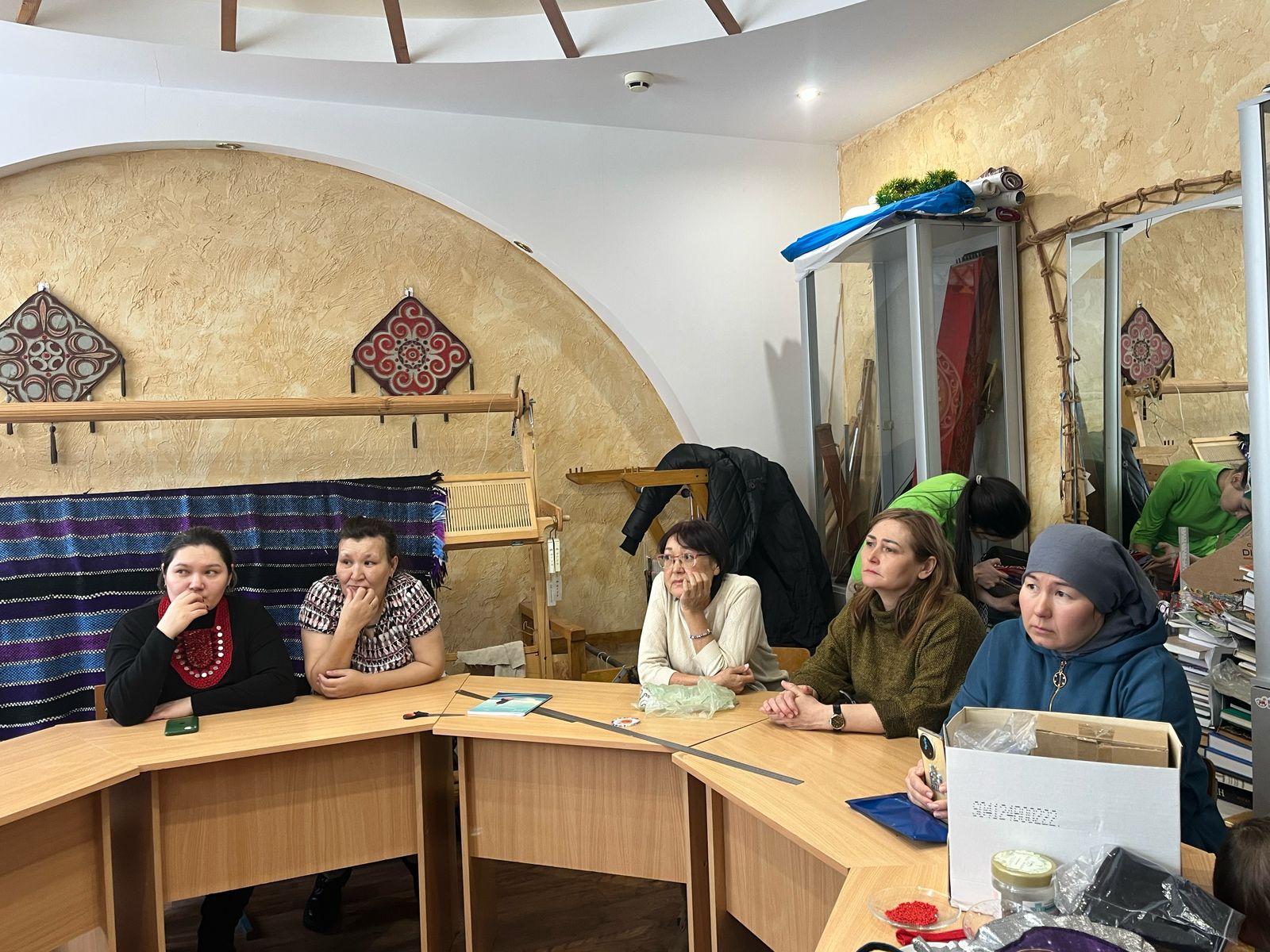 Асия Султановна рассказала присутствующим все тонкости изготовления, пошагово обьяснила выполнение работы, а также показала другие национальные украшения, созданные своими руками.