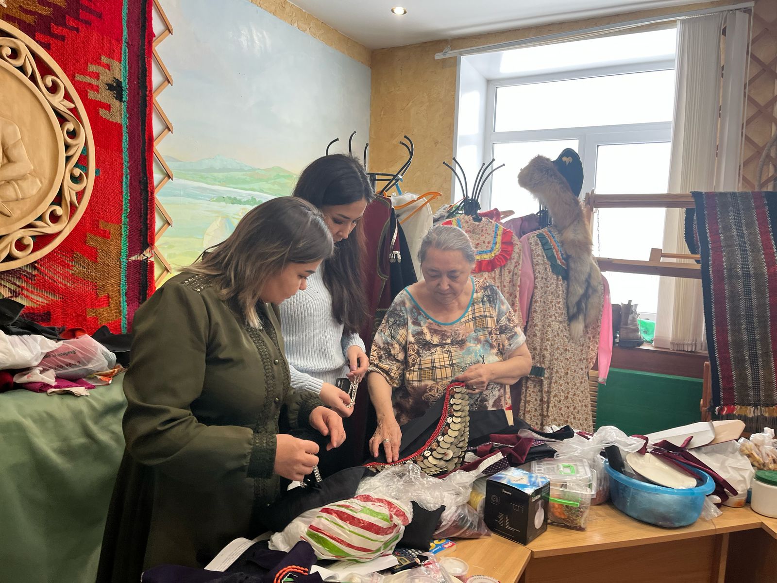 Асия Султановна рассказала присутствующим все тонкости изготовления, пошагово обьяснила выполнение работы, а также показала другие национальные украшения, созданные своими руками.