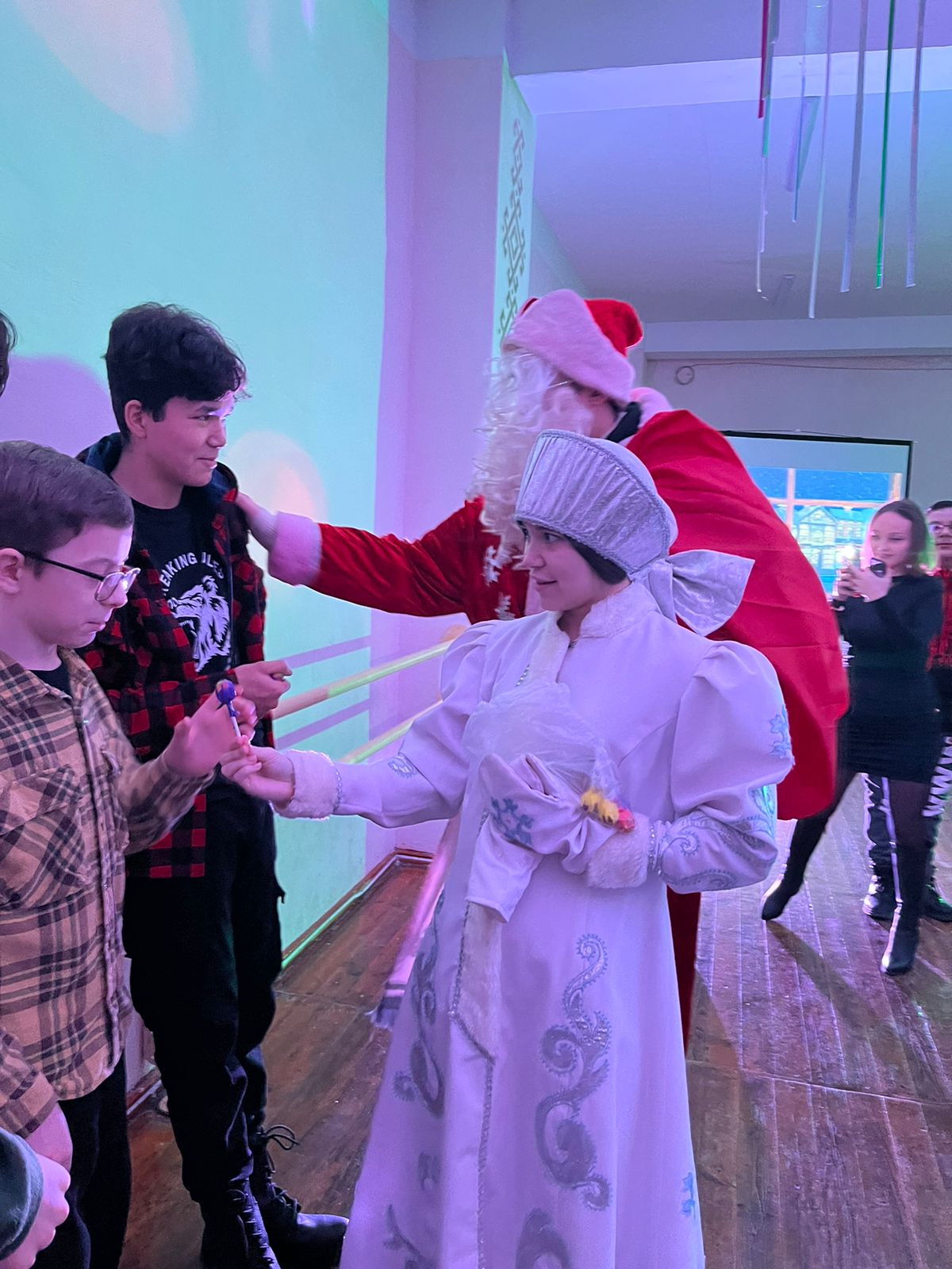 В 21 декабря был проведен Новогодний вечер «Снежный Бум» для учеников 7 класса лицея «Ирандык». Мероприятие было организовано с целью создания праздничной атмосферы, развития коммуникативных навыков и творческого потенциала детей. В начале праздника состоялось торжественное открытие и представление команд. Затем пповели конкурсы и игры, связанные с новогодней тематикой. Ребята разделились на две команды. Ведущая вечера Инна Пивоварова провела очень много новогодних конкурсов, веселых игр. Победителей ждали призы. С появлением Деда Мороза начался настоящий праздник с песнями и танцами, хороводами вокруг елки. Веселая музыка, хорошее настроение, поздравления от Деда Мороза и Снегурочки дали всем участникам праздника заряд бодрости и энергии на целый год. Новогодний праздник подарил всем участникам ощущение сказочного волшебства, веселья и радости.