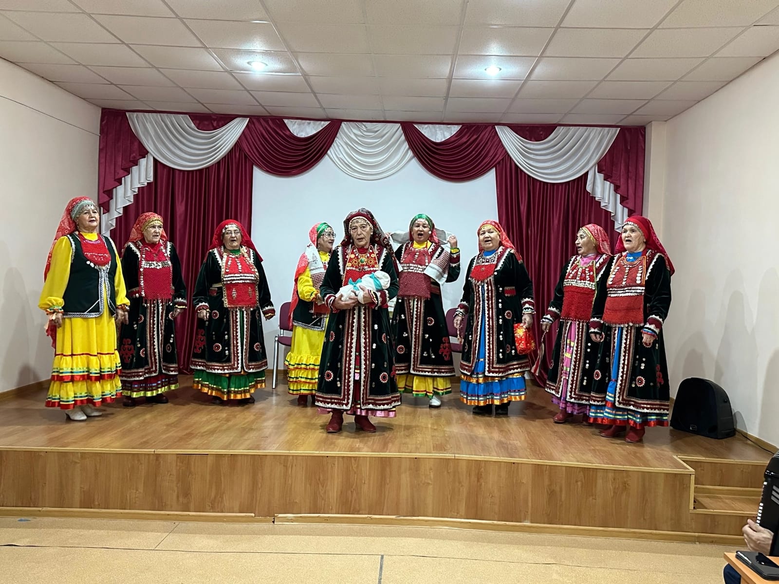 Присутствующие стали свидетелями того, как раньше проходила встреча новорожденного ребёнка. Она сопровождалась многочисленными ритуалами, где использовались народные песни.