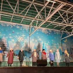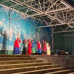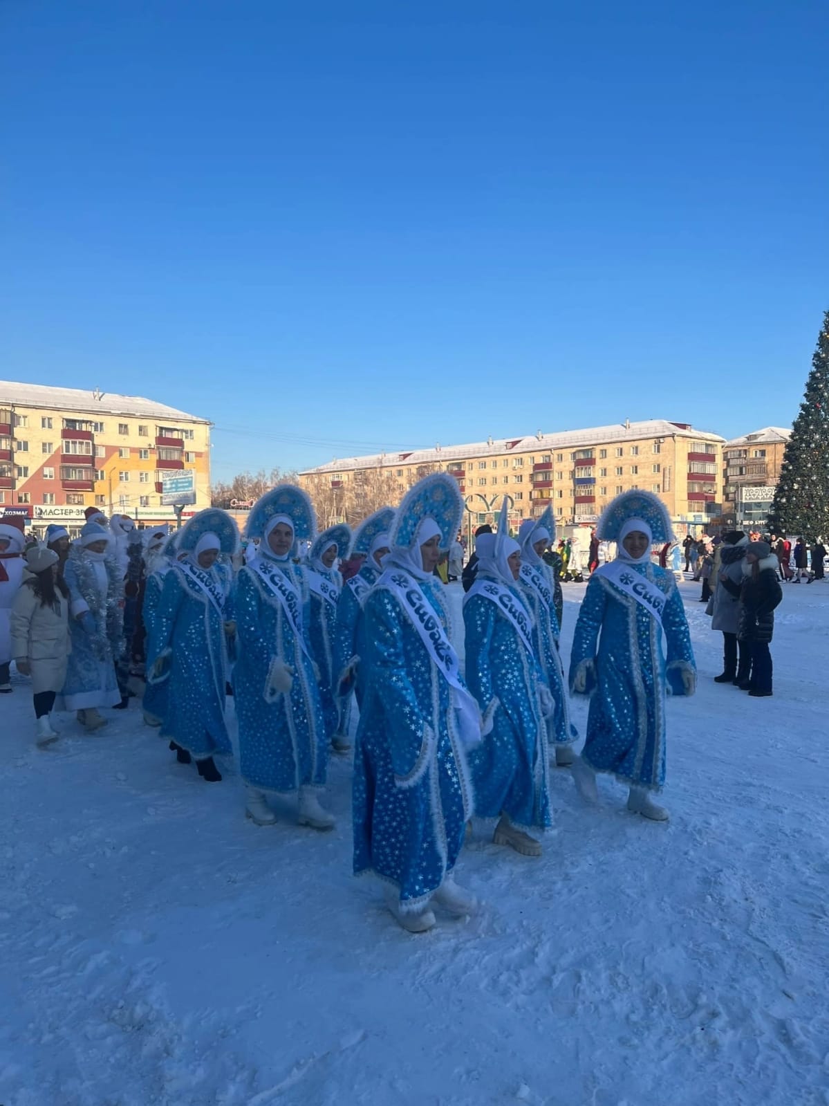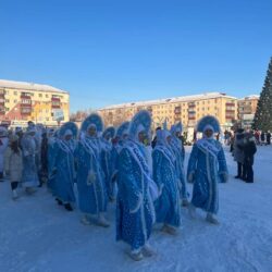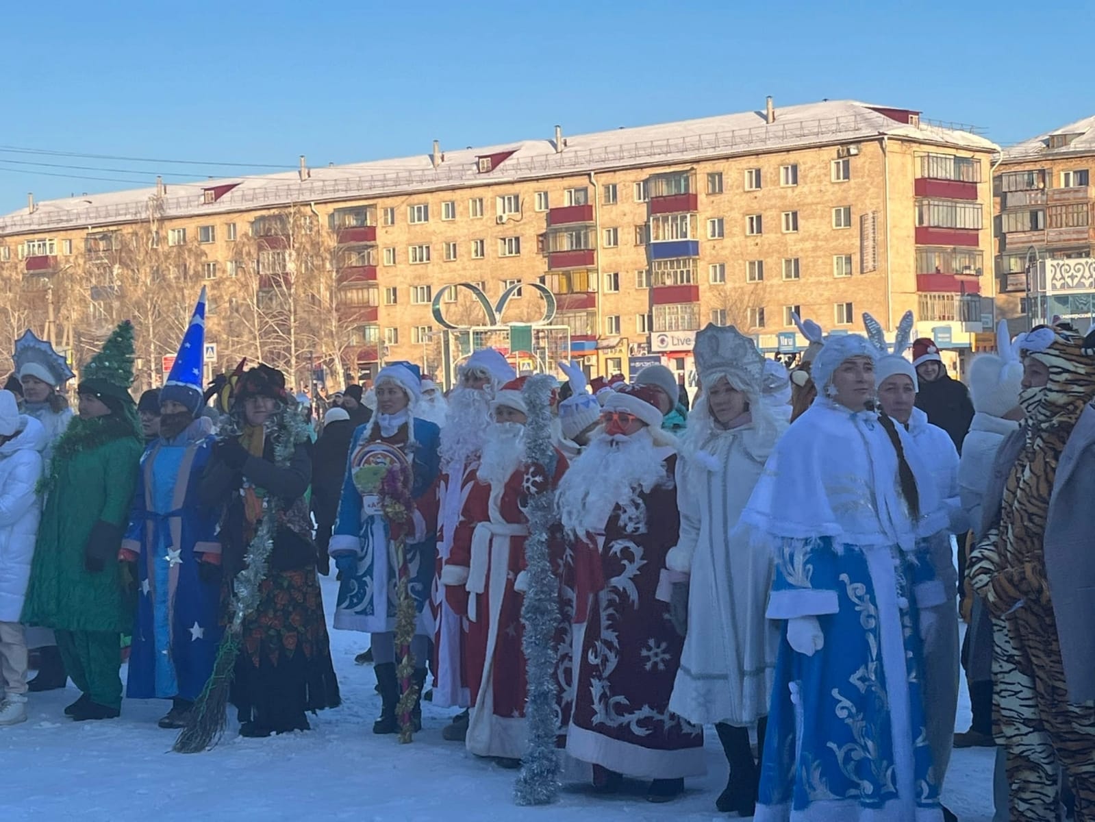 Веселые Деды Морозы, Снегурочки и сказочные персонажи прошли от курантов до центральной площади, танцевали возле главной ёлки и присоединились к праздничной программе, где представили свои выступления с поздравлениями.
