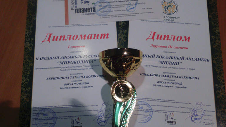 27 октября 2018 года в г.Магнитогорск Челябинской области прошел Международный конкурс-фестиваль «Урал собирает друзей», где приняли участие Народный вокальный ансамбль «Миляш» и Народный ансамбль русской песни «Мироколица» Центра народной культуры и досуга. Данное мероприятие проходит при информационной поддержке Министерства культуры РФ и при поддержке Управления культуры г.Магнитогорск. В конкурсе участвовали около 100 коллективов со всей России. Ансамбли Центра народной культуры и досуга представили жюри лучшие образцы народного вокала. Среди финалистов по решению жюри народный вокальный ансамбль «Миляш» под руководством Заслуженного работника культуры Ильбаковой Мамдуды Каюмовны стали лауреатами III степени в номинации «Вокал народный», а Народный ансамбль русской песни «Мироколица» (Руководитель ансамбля Вершинина Татьяна Борисовна) были награждены дипломом 1 степени.Народному вокальному ансамблю «Миляш” был вручен сертификат на скидку для участия в любом конкурсе-фестивале, проводимом фондом “Планета талантов” в Российской Федерации и за рубежом. Желаем нашим коллективам дальнейших высот, процветаний и бодрости духа!