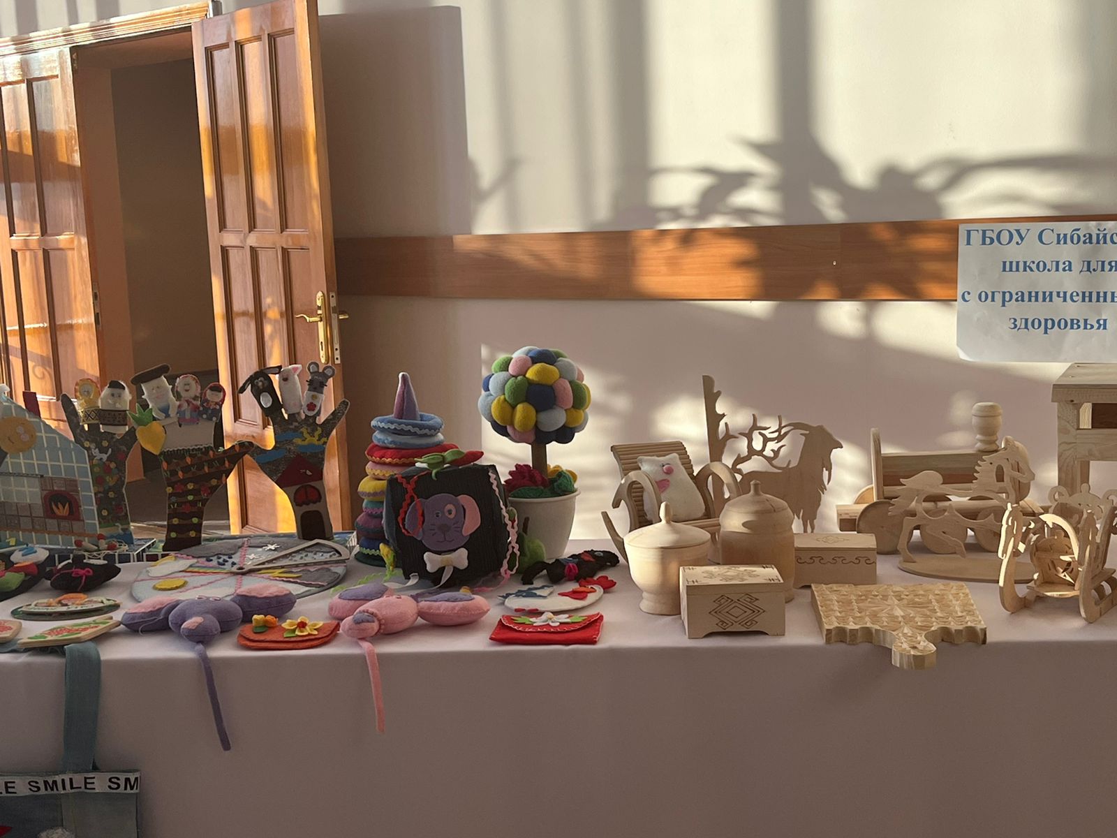 Также в фойе была организована выставка декоративно-прикладного искусства, где были представлены работы людей с ограниченными возможностями.