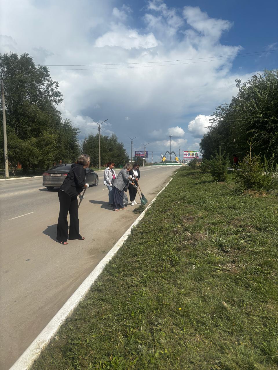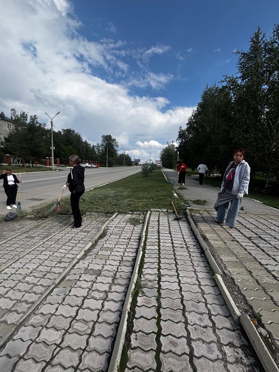 Все дружно взялись за мётлы и поработали с удовольствием: убирали скошенную траву, прибордюрный мусор.