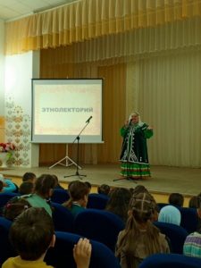 заслуженного работника культуры РБ Ильбаковой Мамдуды Каюмовны, руководителя народной студии этнографии и народного декоративно-прикладного творчества «Ете ҡыҙ» Гайнуллиной Минзили Ишбулатовны, руководителя народного ансамбля кураистов Фанура Ахметова дети восприняли восторженно. Ребята поближе познакомились с традициями, обычаями и обрядами, а также увидели народные костюмы русского и башкирского народов, услышали звучания народных музыкальных инструментов, послушали народные песни. Этнолекторий закончился зажигательным башкирским флешмобом.