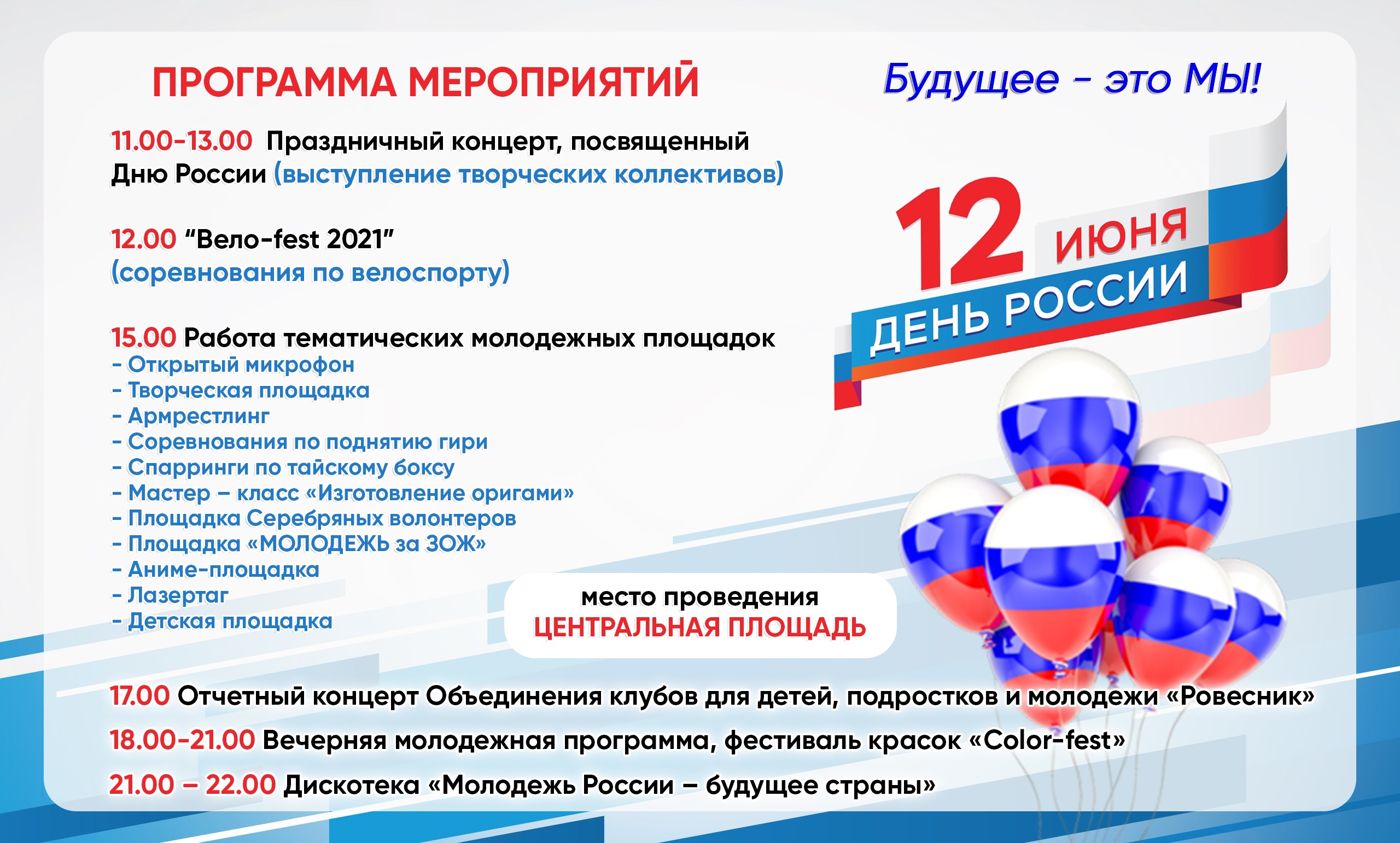 12 июня в Сибае состоятся праздничные мероприятия, посвящённые Дню России.