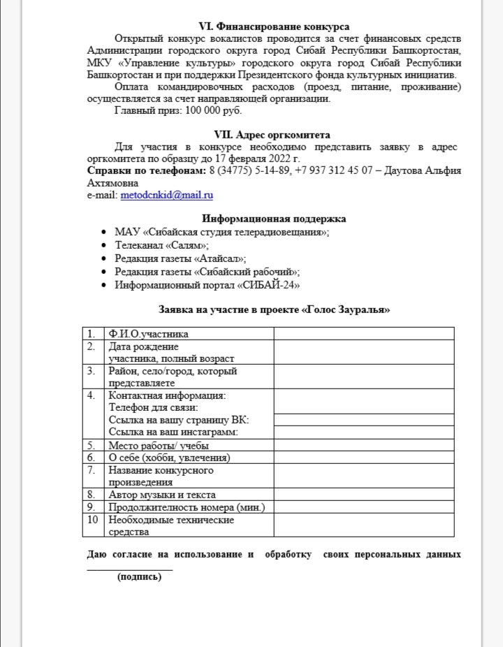 Голос Зауралья 2022 положение