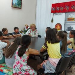 Также, посетили кабинет фольклора, где они распевались на народные интонации, слушали славянские мифы. С интересом посмотрели фильм «Танец душа народа» об ансамбле Ф.Гаскарова.