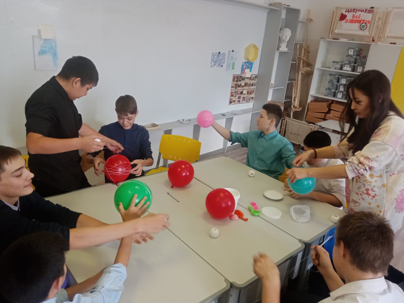 Игрушки создавали с помощью ниток, воздушного шарика и клея ПВА. Из них каждый смог собрать игрушку, придать ей неповторимость, задекорировать бусинами, стразами и лентами.